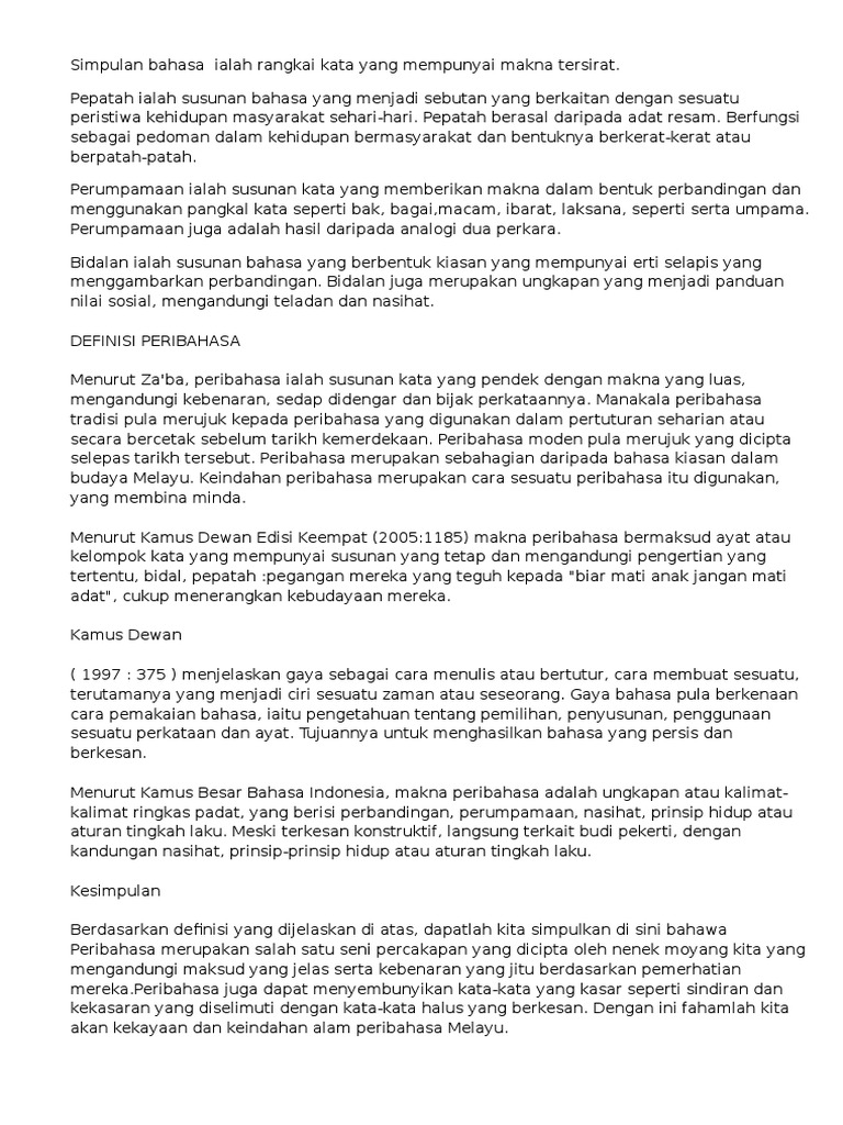Simpulan Bahasa Ialah Rangkai Kata Yang Mempunyai Makna Tersirat
