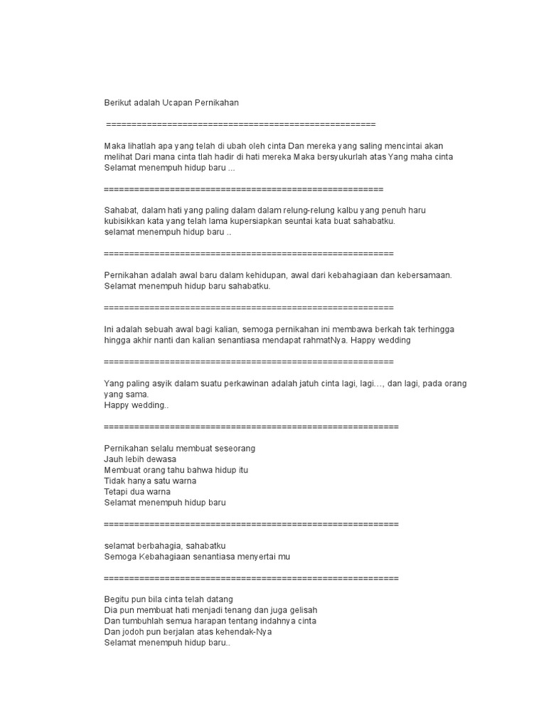Berikut Adalah Ucapan Pernikahan Doc