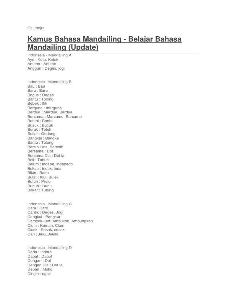 Kata cinta bahasa mandailing dan artinya. Kata mutiara dalam bhs mandailing dan artinya. Kata persahabatan bahasa mandailing dan artinya. Dibawah ini telah kami sajikan artikel yang berkaitan dengan kata mutiara dalam bhs mandailing dan artinya sebagai salah satu referensi dan perbandingan harga.