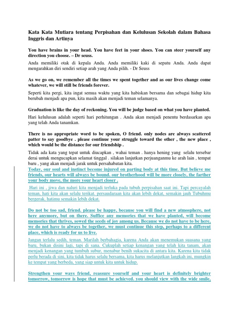 Kumpulan kata kata bijak perpisahan pilihan untuk pacar sahabat dalam bahasa inggris lengkap dengan artinya kata bijak perpisahan ini kami ini ambil dari buku karangan uswatun hasanah mpd. Kata kata bijak bahasa inggris dan artinya kata kata mutiara tentang perpisahan dan kelulusan sekolah dalam bahasa inggris dan artinya. Saat anda membaca atau.